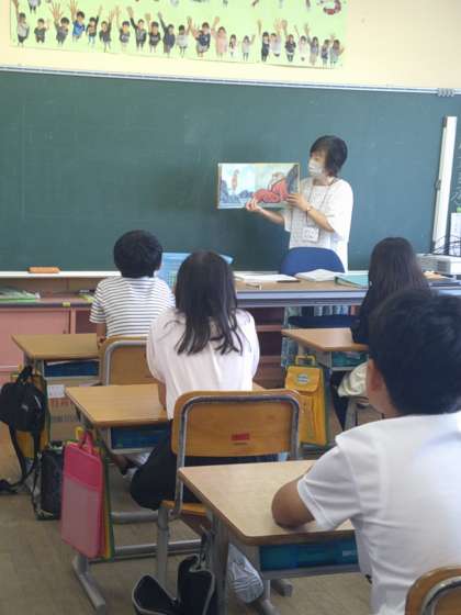 朝の読み聞かせがありました。今日は、5・6年生。「10分で読める伝記」「むかしむかしとらとねこは」「じごくのそうべえ」「としょかんライオン」を読んでいただきました。