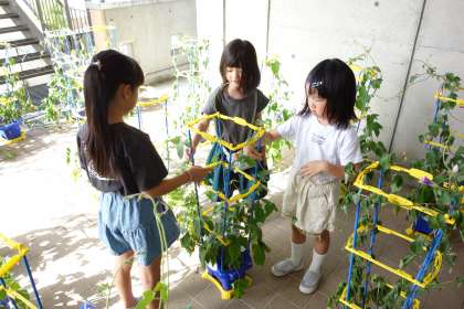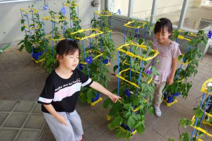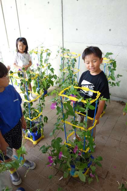 朝の時間、子供たちがあさがおの様子を伝えに来てくれます。今日は、10個も花が咲いたと報告しに来てくれた子がいました。ぐんぐん育つあさがおから、パワーをもらえますね。