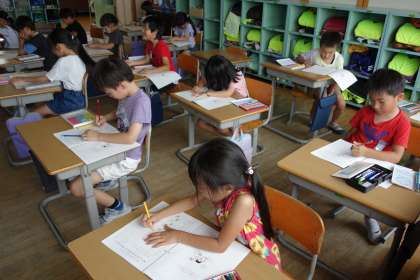 「わたしの健康」という冊子を用いて、1学期の自分の健康について振り返りを行いました。夏休み中も、規則正しい生活で、健康的な毎日を送ってほしいと思います。