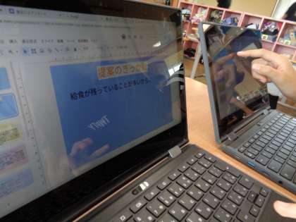 国語の学習で、よりよいくらしのために自分たちにできることについて考えています。学校の様子や環境問題等、グループごとにテーマを決めて提案文を書きました。ポスターを描いたり、放送で呼びかけをしたりしようと準備を進めています。