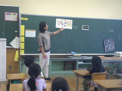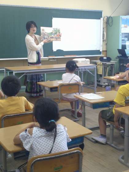 朝の読み聞かせがありました。今日は1・2年生、のぞみ・あおぞら級でした。「おばけの猛暑日」「アイスパーティ」「とべないほたる」「うちのねこ」「じごくのそうべえ」の絵本を読んでいただきました。