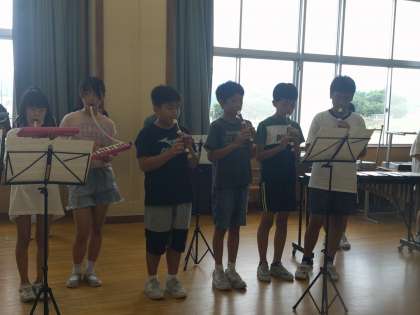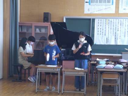 音楽科では、「さんぽ」の合奏を発表しました。心を1つにしたとても力強い合奏で、6年生の子供たちらしさと日頃の学習の成果が見られました。