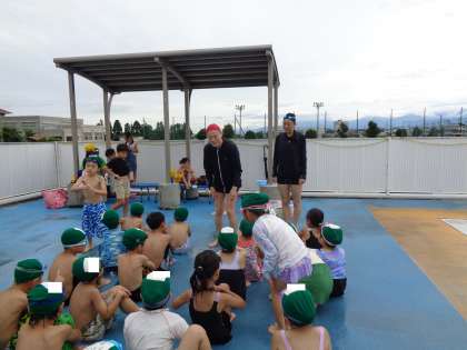 今日で水泳教室は最終日でした。コーチに教えてもらい、楽しく水泳学習を行いました。
