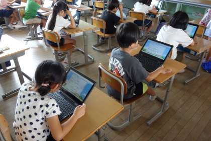 体力テストの後に、生活に関するアンケートに回答しました。クロームブックの操作にも慣れてきた子供たちです。