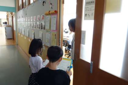 生活科の学習の様子です。先生方にインタビューを行う学習の第2弾です。今回は普段関わりの少ない先生方に、勇気をもって話しかけてきました。
