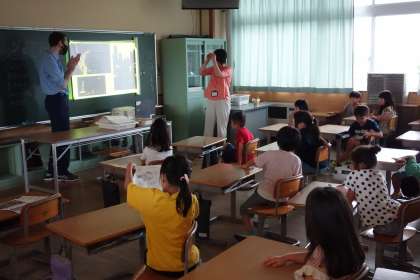 今日は、ALTの先生との英語の授業がありました。初めての英語の授業に子供たちは興味津々。進んで、ALTの先生に質問をしていました。