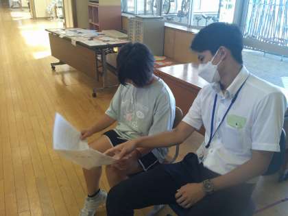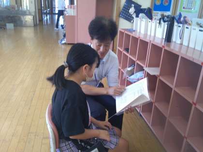 高学年になって初めての通知表。委員会活動等、高学年としての自分はどうだったでしょうか?担任の先生と、学習や生活をしっかり振り返りました。