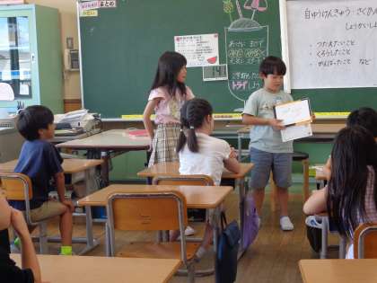 2学期が始まり、子供たちの元気な声が教室に戻ってきました。静かに先生や友達の話を聴いたり、一生懸命頑張って自由研究をみんなに発表したりしました。1学期に身に付けたことを2学期も続けようとする姿が見られています。