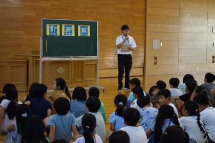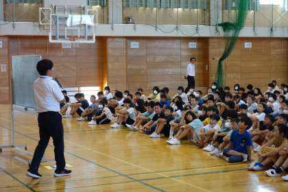 始業式の後には、今週末に実施されるシェイクアウト訓練の事前指導も行いました。