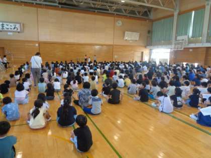 今日は始業式が行われ、3年生の子供たちはきちんと前を向いて話を聞いていました。