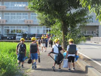 宿題や新学期の持ち物でふくらんだ大きなリュックを背負って、子供達が汗だくになって歩いてきます。