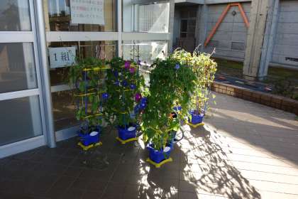 保護者の皆様、あさがおの運搬のご協力ありがとうございます。今週いっぱい児童玄関前をあさがお置き場としています。