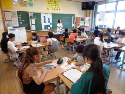 1学期の復習をクイズ形式で行いました。チーム戦で楽しく復習することができました。