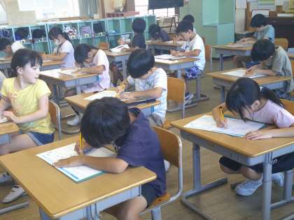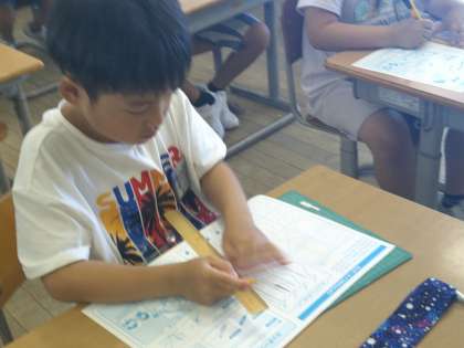 今日は、カッターナイフで直線や曲線を切る練習をしました。カッターナイフを使うのは初めてだったので、子供たちは恐る恐る、慎重に、安全に気を付けて活動しました。使っていくうちに、だんだん上手になってきました。