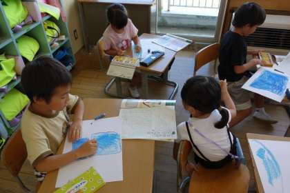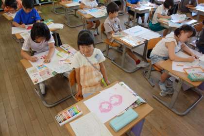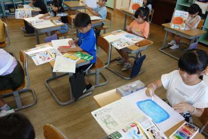 夏休みに経験したことを、生き生きとお話する子供たち。夏休みのことを思い出しながら、楽しく学習に取り組みました。