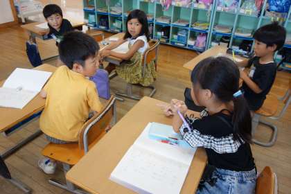 1組では、今日子供たちに「自主学習(家庭学習)ノート」を配付しました。ノートの使い方を学習し、実際に課題に取り組んでみました。今日は「あ」の付く言葉をみんなでたくさん探し、ノートいっぱいに書くことができました。今日の家庭学習もがんばってくださいね。