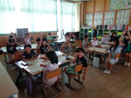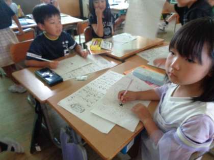 国語の学習では、1学期に習ったひらがなの復習として、ひらがなびんごを行いました。ひらがな表を見て、「とめ、はね、はらい」に気をつけて、ますを埋めていきます。自分が書いたひらがなが呼ばれると大喜び。楽しんで学習することができました。