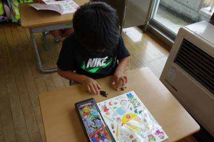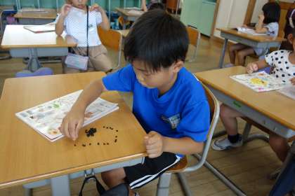 あさがおの種がたくさん集まってきました。中には、150個以上集まった子供もいました。