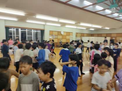 美味しい夕食と気持ちのよい入浴を終えて、夜の集会活動を行いました。「猛獣狩りに行こうよ」「アブラハムの子」のゲームを楽しんだり、1日の振り返りを行ったりしました。1日蒸し暑い中での活動で疲れた様子も見られましたが、集会での子供たちは、みんな元気です。