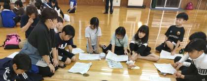 集会を終えて、係毎や班毎の振り返りを行いました。今日の活動を振り返り、明日に生かそうというやる気が感じられました。