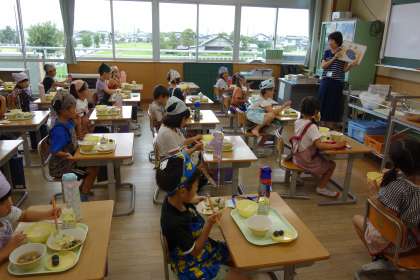 今日の給食では、デザートに「巨峰」が出ました。学校栄養士さんが、各教室で巨峰について説明をしてくださいました。今日もおいしくいただきました。