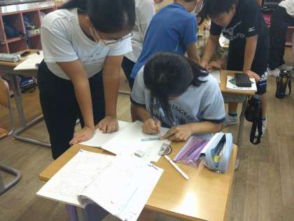 もとにする三角形と対応する辺の長さや対応する角の大きさを確かめながら、2倍の拡大図をかきました。