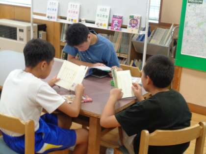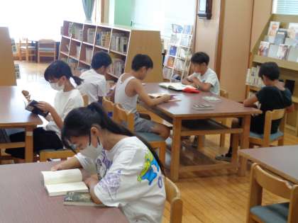 本紹介の後は、自分の読みたい本を選び、読書や貸し出しを行いました。静かな空間でじっくりと本の世界に入り込んでいました。