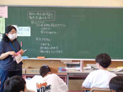 布製品を作るときのポイントについて学習しました。大きさや形状等、目的に合わせて製作計画を立てることが大切であることが分かりました。