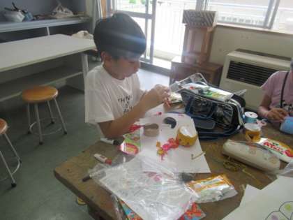 紙粘土に色を付けたり、飾りを付けたりして工夫しました。