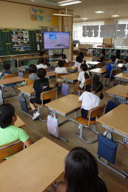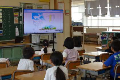 いろいろな雲の写真や題名から想像を膨らませました。今日から「くじらぐも」の学習がスタートです。話を聴かせると、思わず叙述を読み出す子供たち。ファンタジー作品の名作を味わいましょう。