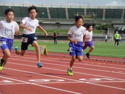 写真は、男子の50メートル走の様子です。みんな精一杯走りました。