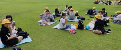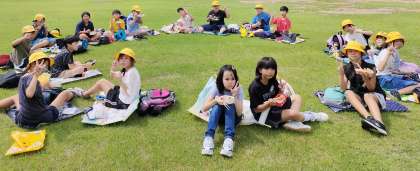 午前中の学習が終わり、常願寺川公園でお弁当を食べました。残暑が厳しい中でも、子供たちは、美味しそうにお弁当を頬張っていました。