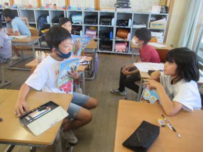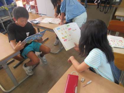 今日の外国語活動では、好きな色やスポーツを相手に聞く表現を学習しました。