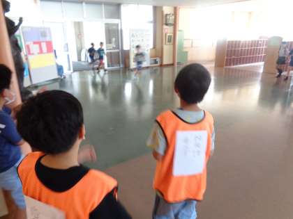 今日からその取組をスタートさせました。休み時間に当番が各フロアに分かれて宮野っ子の歩行を見守りました。