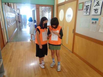 先日、学級で「みんなが校内を歩くために自分たちに何ができるか」を考え話し合った結果、週交代制で校内をパトロールすることになりました。