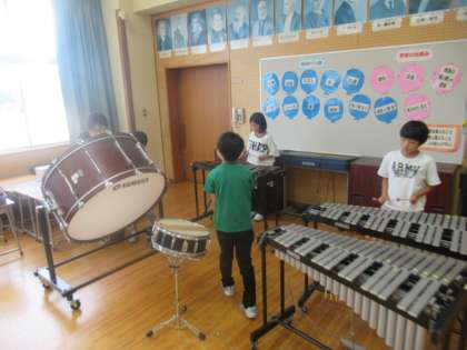 今日の音楽では、「ミッキーマウスマーチ」をいろいろな楽器を使って演奏しました。初めて挑戦する楽器もあって楽しそうに演奏していました。