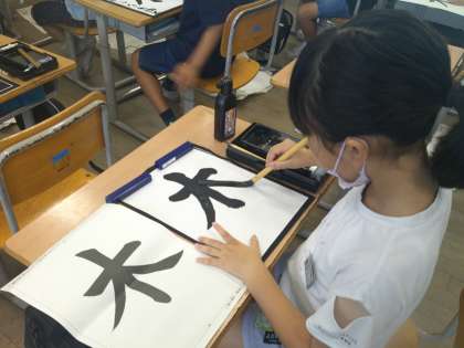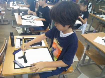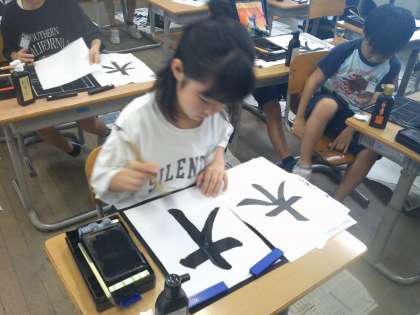 3年になって始まった毛筆の筆使いも、だいぶん上達してきました。今日は、「右はらい」「左はらい」の学習を生かし、「木」の清書を行いました。「はらい」はなかなか難しいですが、子供たちは、何度も何度も練習して上手になりました。