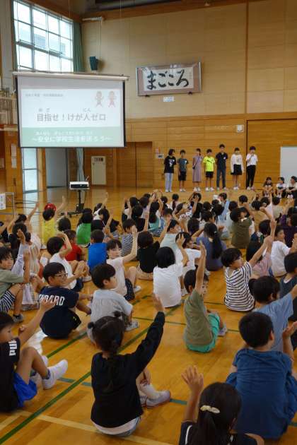本日、学校保健委員会を行いました。テーマは「目指せ!けが人ゼロ 〜安全に学校生活を送ろう〜」です。