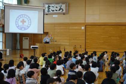 保健委員会の発表を聞いたり、日本赤十字社の方や学校医の先生方のお話を聞いたりして、けがの予防について考えました。