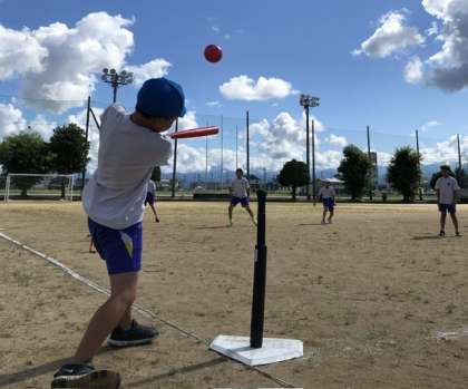 遠くまでボールを飛ばそうと子供たちで相談する姿が見られました。