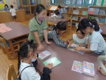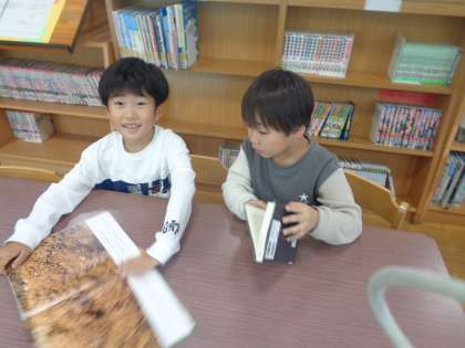 2年生は図書室で本を借りました。教科書に出てくる本や、文字の多い本にも目を向け、読んでみようと挑戦する姿が見られました。