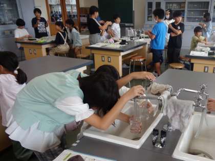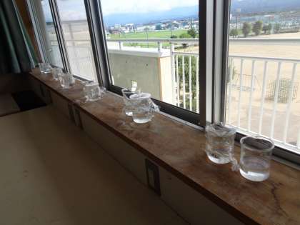 2つのビーカーに水を入れ、片方に覆いをかぶせて置きました。