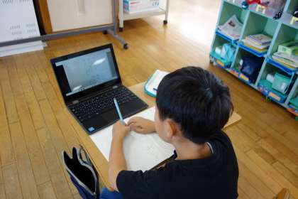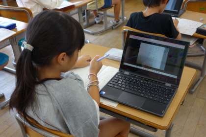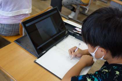 2学期から漢字を学習し始めた子供たち。クロームブックで書き方の手本を確認し、丁寧に練習を進めました。宿題もがんばってくださいね。