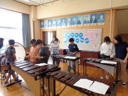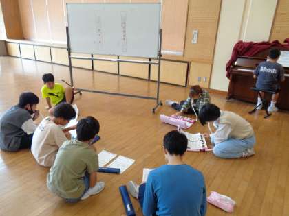 みんなで選んだ「夢をかなえてドラえもん」の曲を練習をしています。パート練習の後、みんなで通して演奏しました。