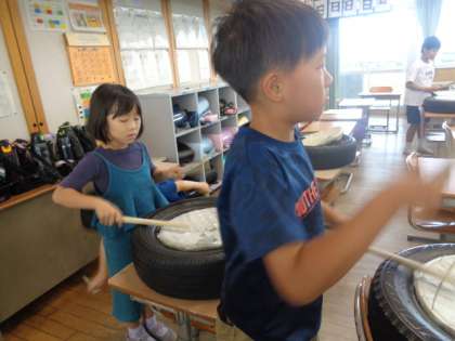 今日の太鼓練習の様子をお届けします。 真剣に、力強くたたく姿がすてきです。
