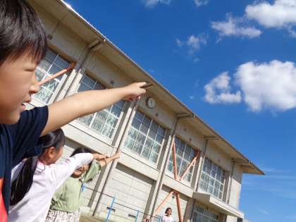 休み時間、外に出た子供たちが空に浮かぶ雲を見て、「不思議な雲だ」「くじらぐもじゃない?」と話していました。