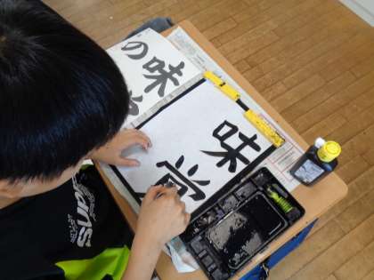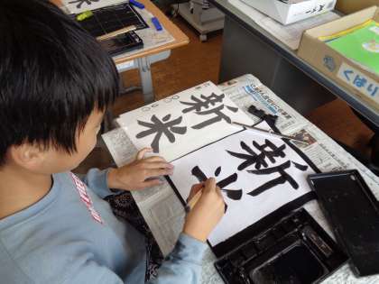 複数の秋の言葉から自分の書きたいものを選び、習字で書きました。手本をよく見て、バランスに気を付けて練習していました。