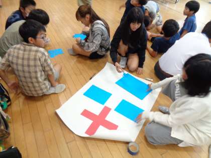 学習発表会の劇で使う小道具を作っています。台本だけでなく、小道具も自分たちで準備します。