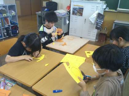3年生は、11月3日に行われる宮川・熊野両地区の文化祭に向けて、毛筆で「木」を書きました。今日は、その毛筆の周りを飾る秋の葉をつくりました。文化祭にふさわしい紅葉がイメージできる作品に仕上げる予定です。どうぞお楽しみに。