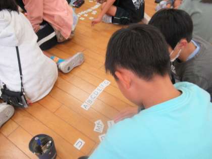 今日の外国語の学習では、アルファベットカードを並べたり、ビンゴをしたりしました。